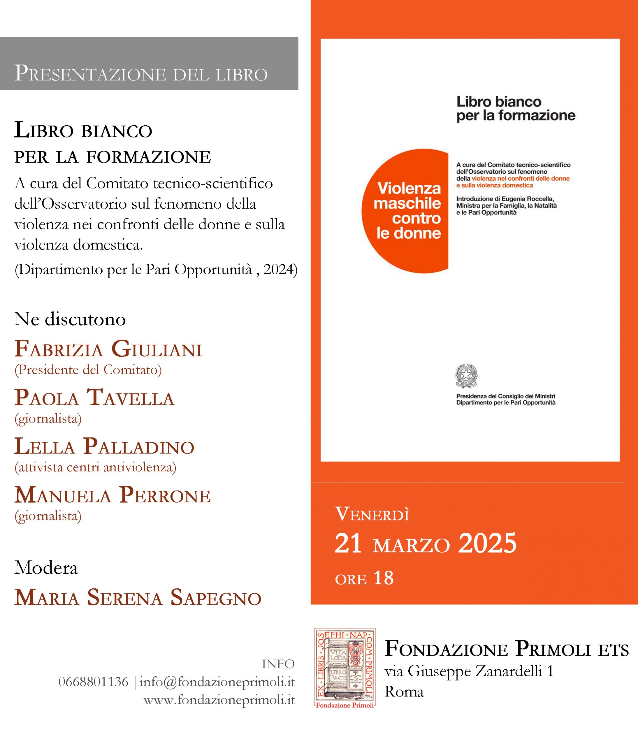 Venerdì 21 marzo 2025, ore 18:00